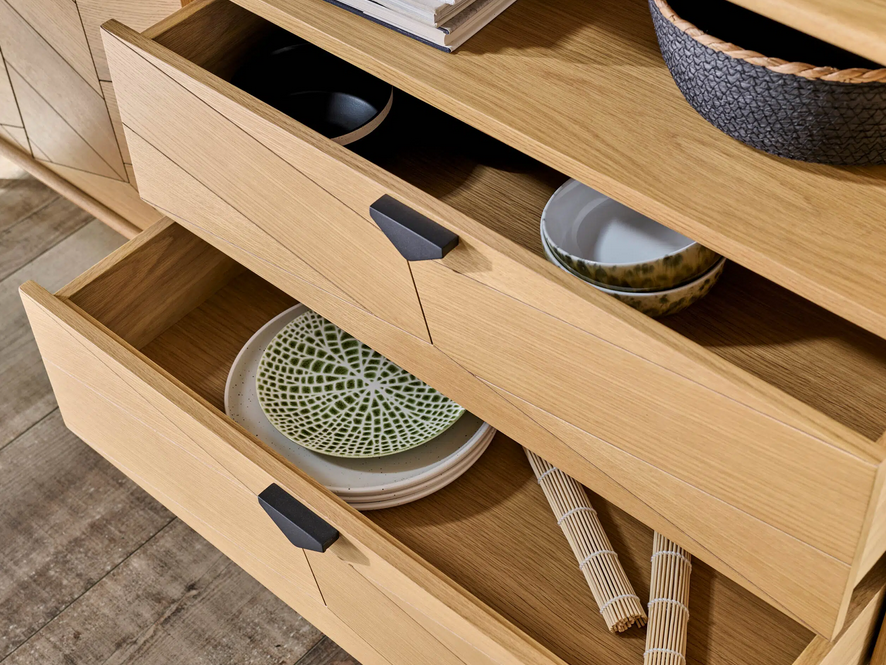 Sans ornements superflus, cette gamme souligne la chaleur et la beauté intemporelle du bois, créant ainsi un intérieur apaisant et raffiné.