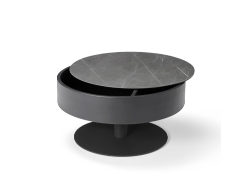 Structure : dessus céramique sur verre, coffre médium laqué gris acier.